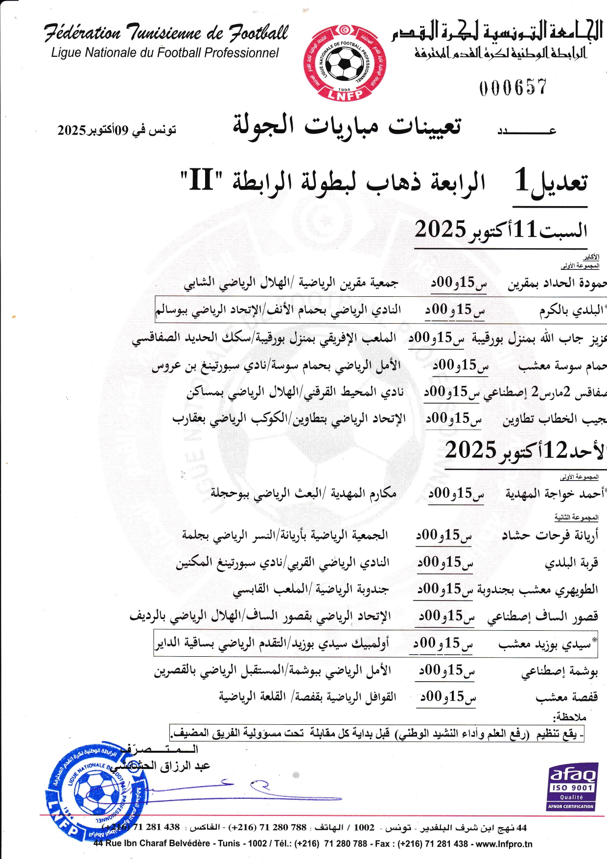 تعديل تعيينات مباريات الجولة 4 ذهاب لبطولة الرابطة « II »