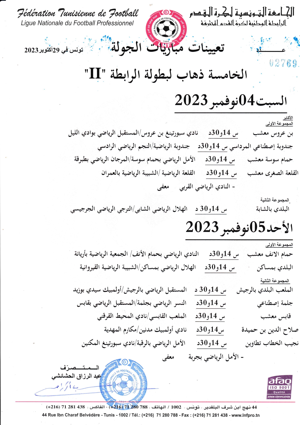 تعيينات مباريات الجولة 5 ذهاب لبطولة الرابطة 2