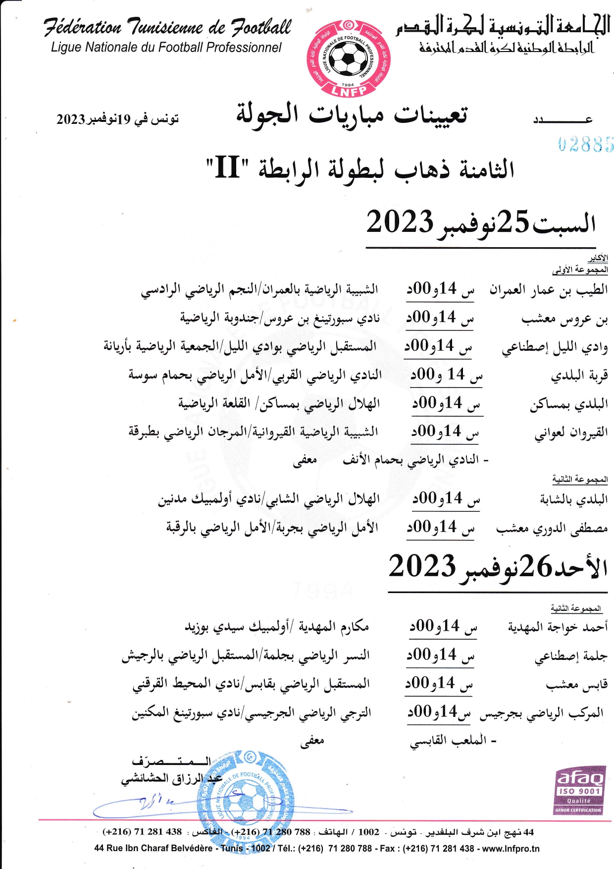 تعيينات مباريات الجولة السابعة ذهاب لبطولة الرابطة الثانية