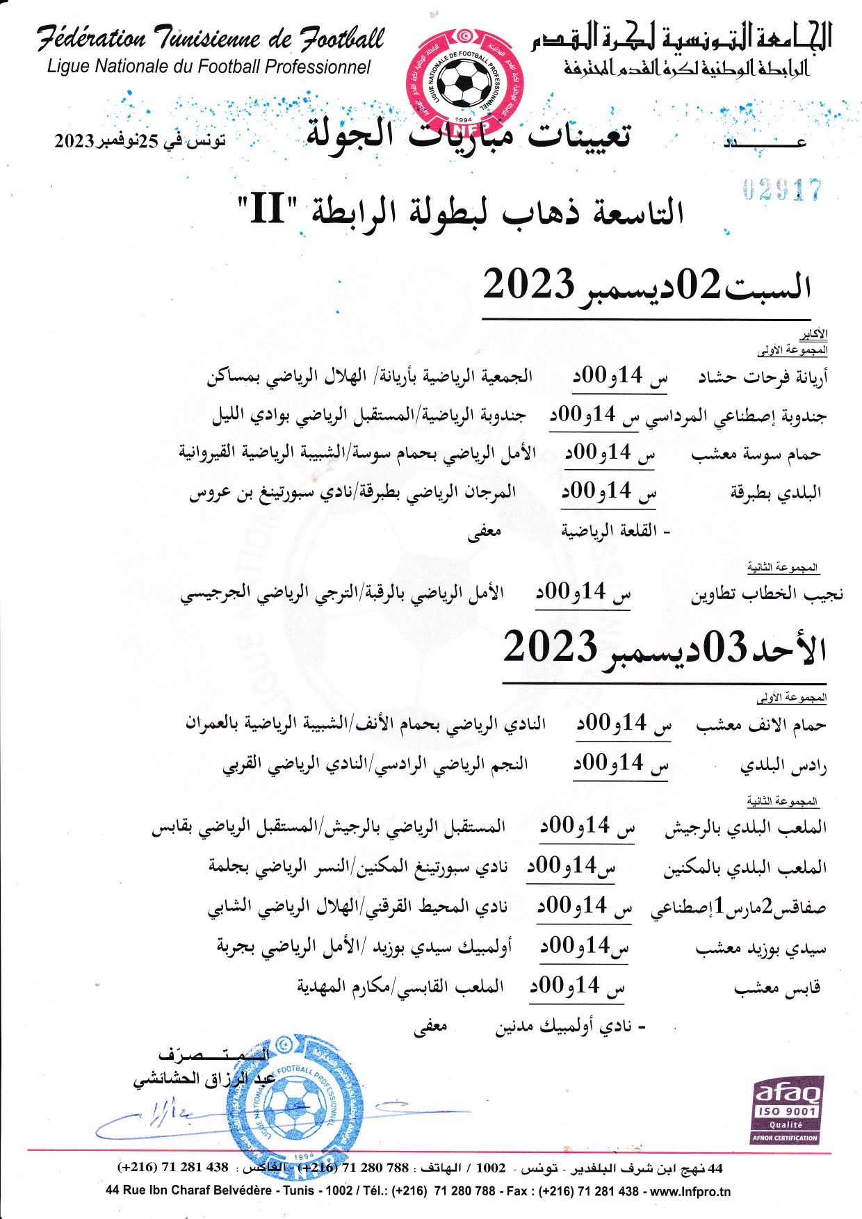 تعيينات مباريات الجولة 9 ذهاب لبطولة الرابطة 2