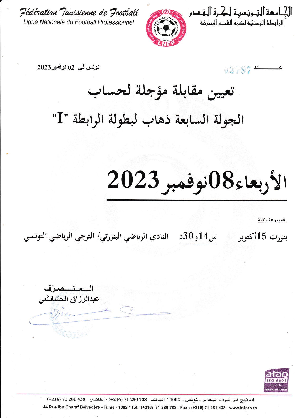تعديل تعيينات مباريات الجولة 9 ذهاب لبطولة الرابطة « I »