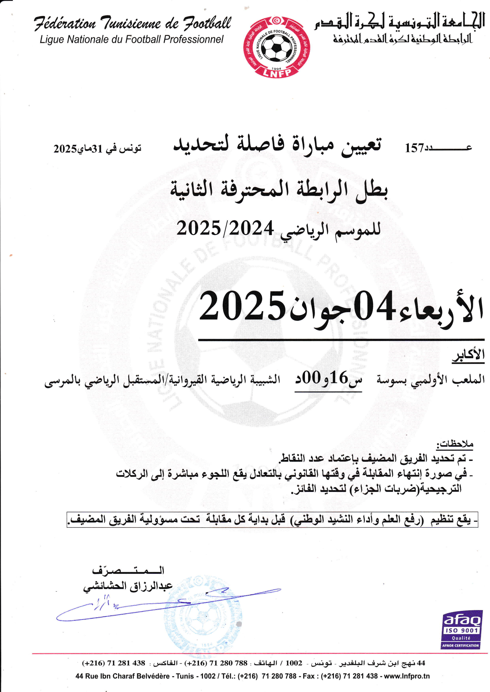 تعيين مباراة فاصلة لتحديد بطل الرابطة المحترفة الثانية للموسم الرياضي 2024 / 2025