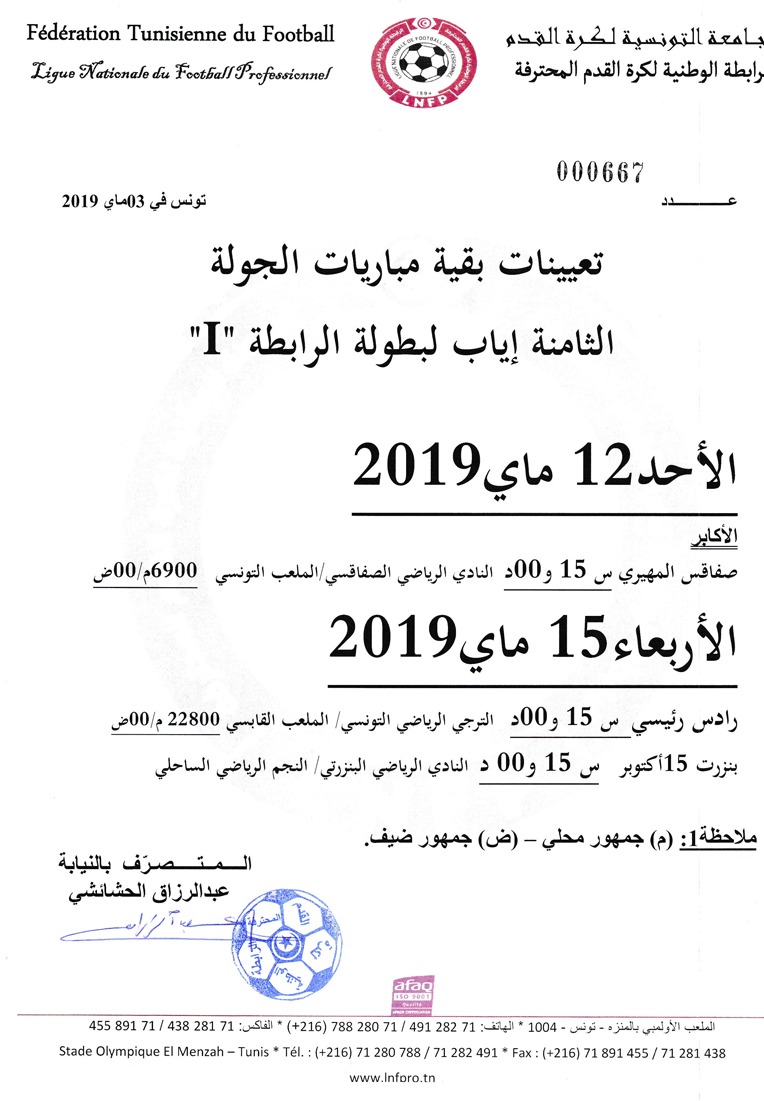 تعديل تعيينات مباريات الجولة 9 ذهاب لبطولة الرابطة « I »