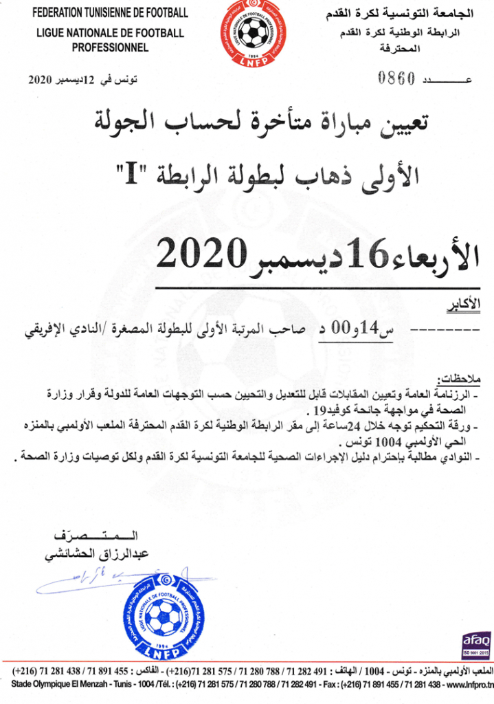تعيين مباراة متأخرة لحساب الجولة الاولى ذهاب لبطولة الرابطة 1