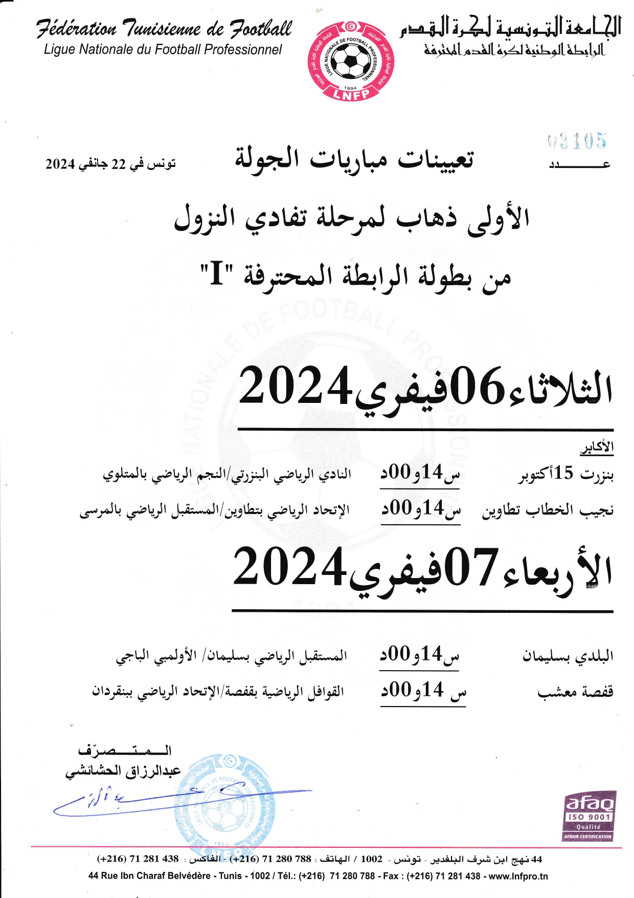 تعديل تعيينات مباريات الجولة 9 ذهاب لبطولة الرابطة « I »