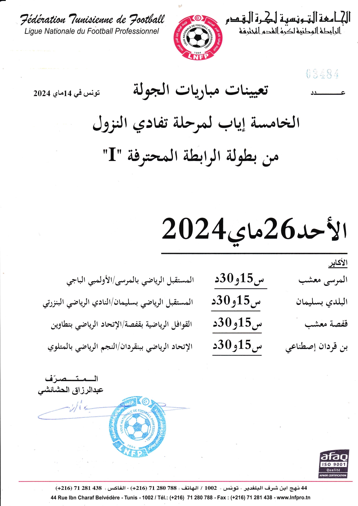 تعيين مباريات الجولة 5 إياب من مرحلة تفادي النزول لبطولة الرابطة المحترفة الاولى