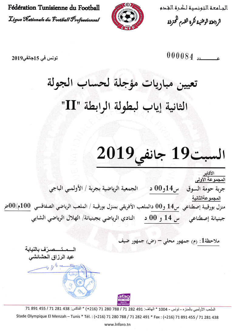 تعيين مباريات مؤجلة لحساب الجولة الثانية إياب لبطولة الرابطة 2