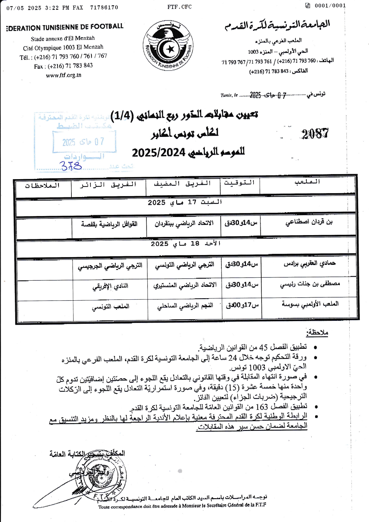 تعيين مقابلات الدور ربع النهائي لكأس تونس أكابر