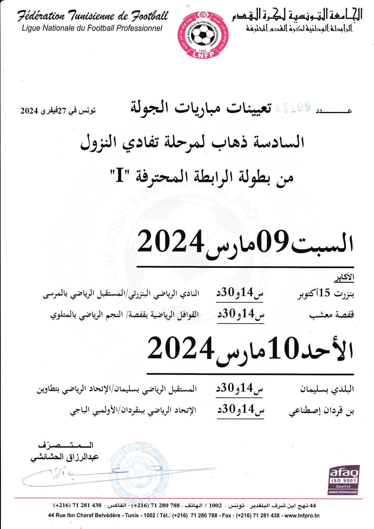تعيين مقابلة الجولة ط ذهاب لمرحلة تفادي النزول لبطولة الرابطة1