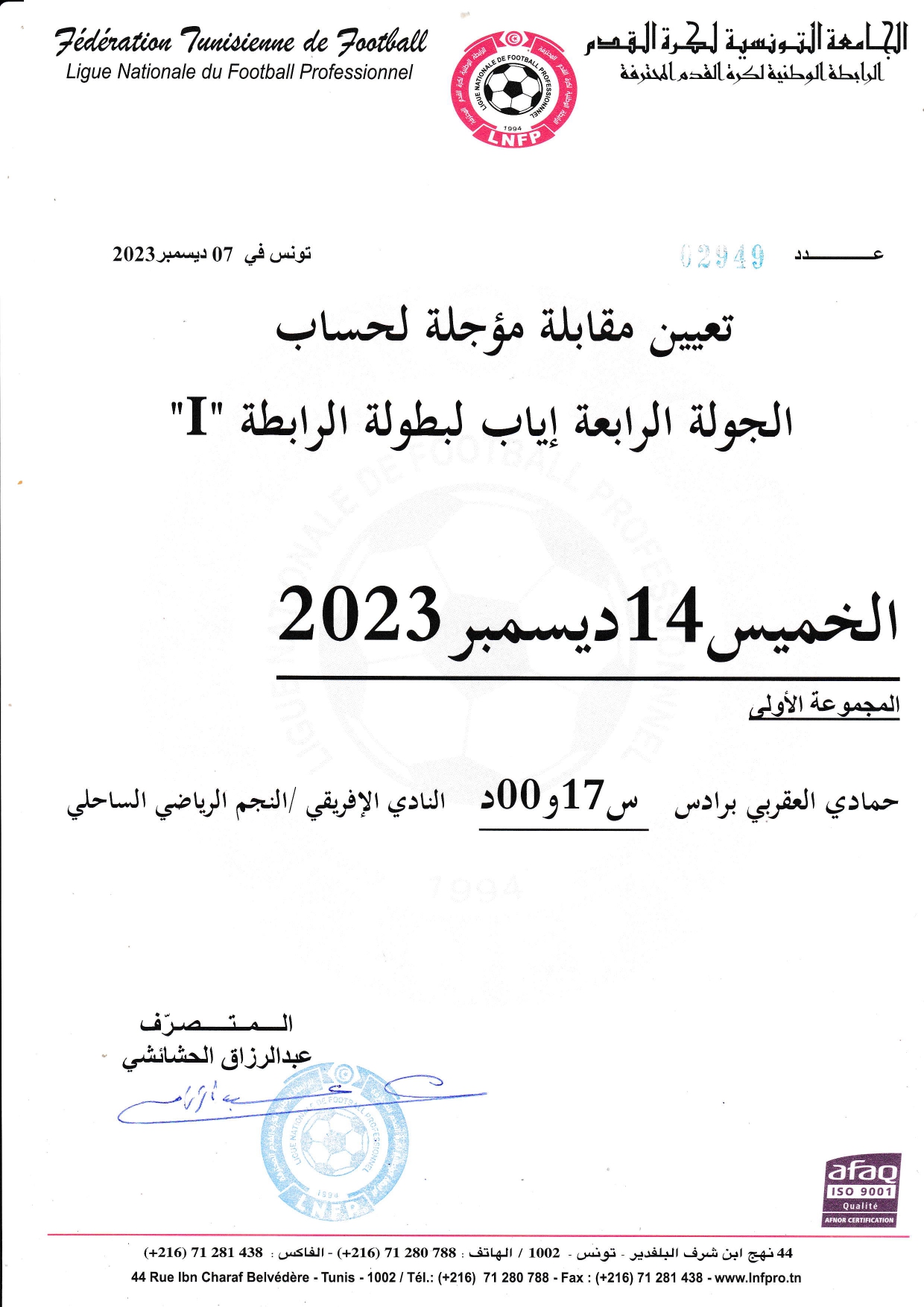 تعيين مقابلة مؤجلة بحساب الجولة الرابعة إياب لبطولة الرابطة المحترفة الأولى