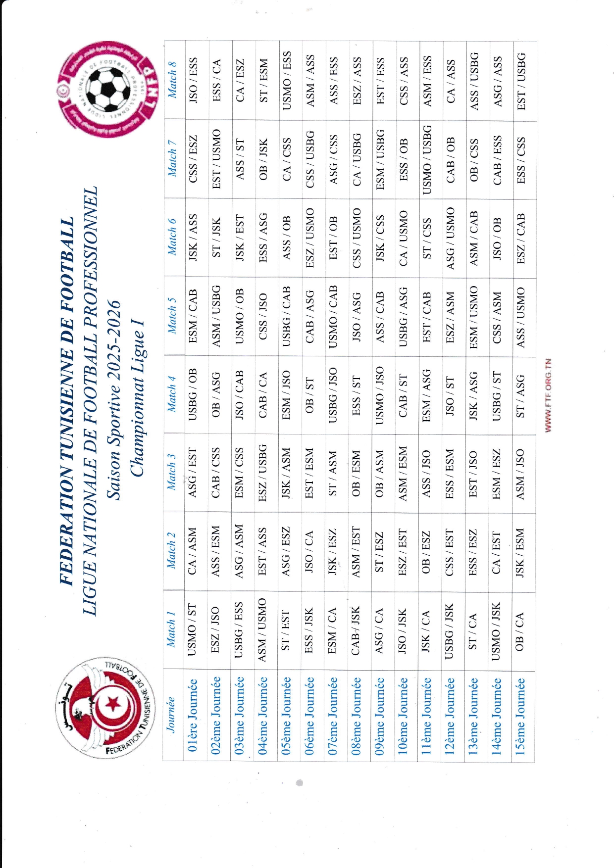 رزنامة مقابلات بطولة الرابطة المحترفة الأولى للموسم الرياضي 2026/2025