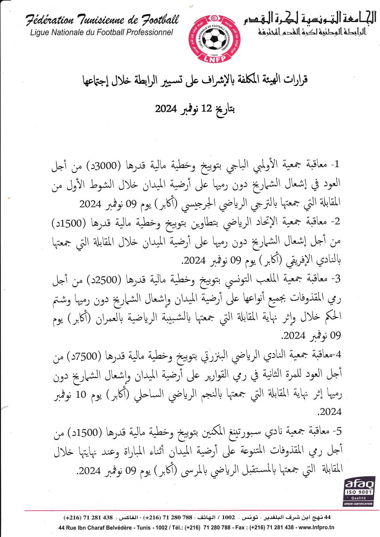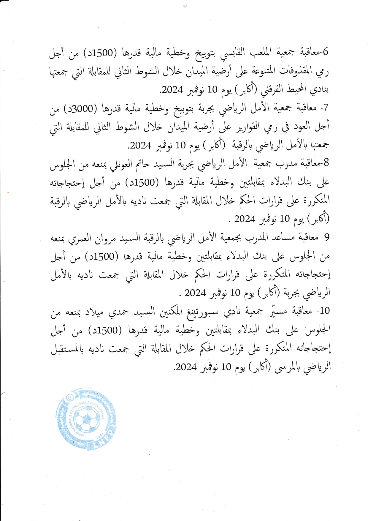 قرارات اللجنة المكلفة بتسيير الرابطة