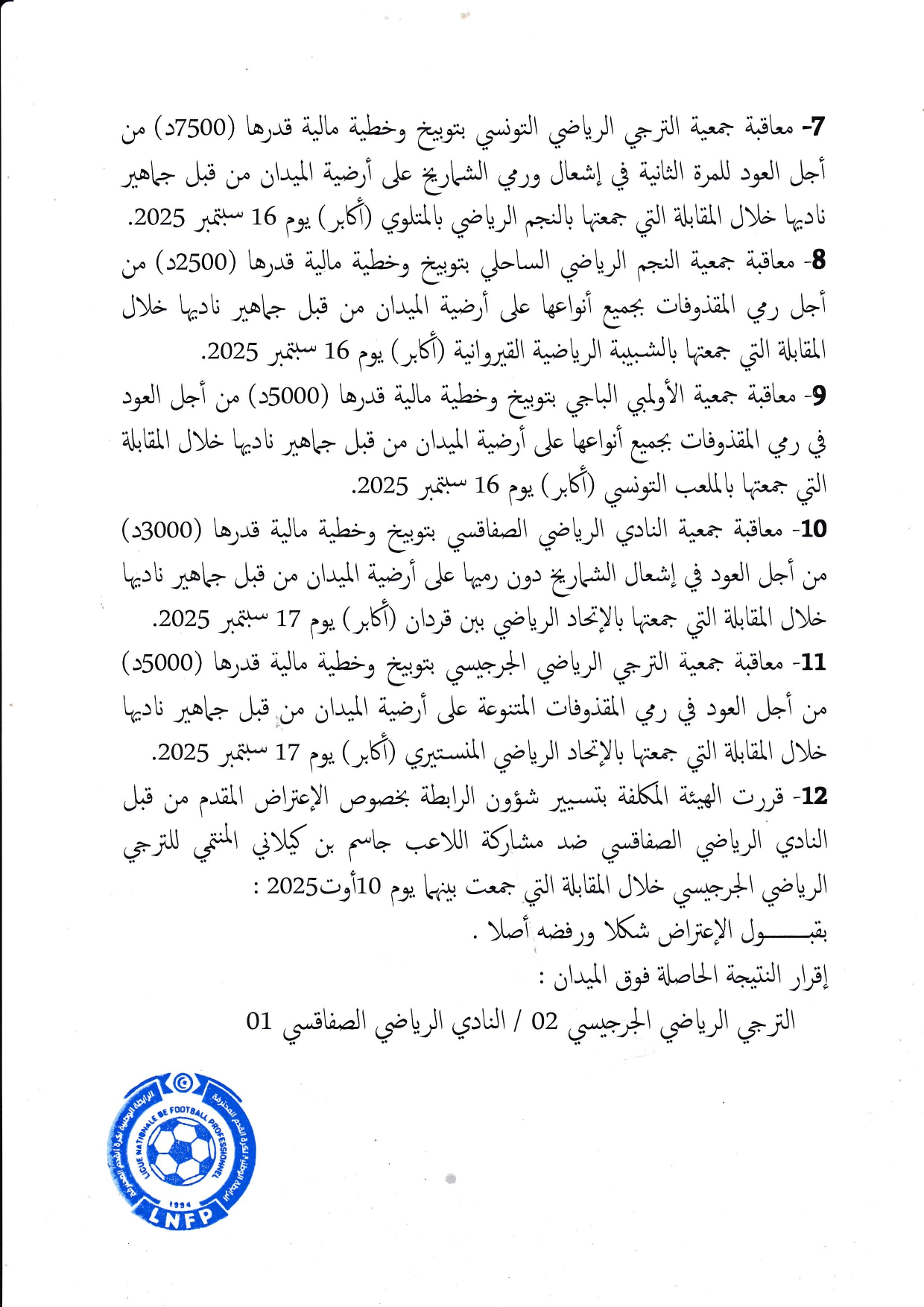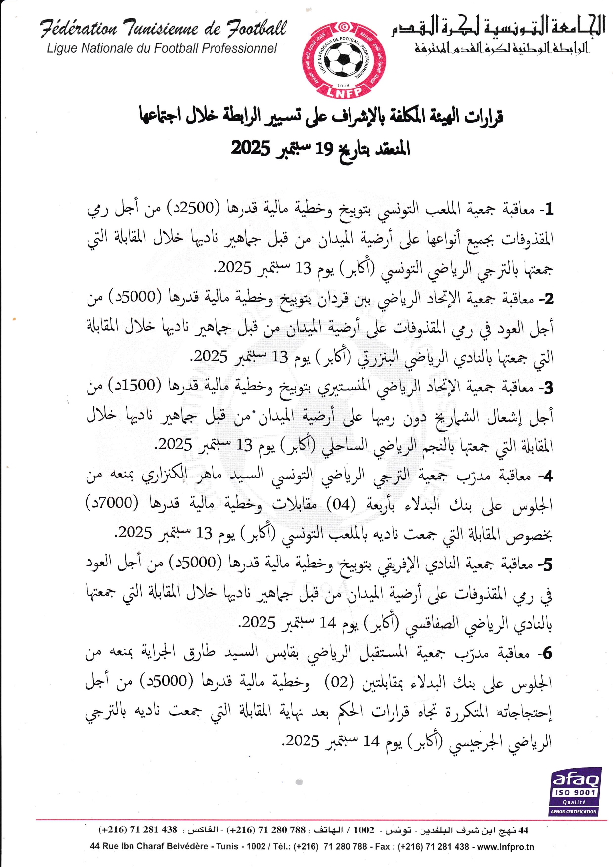 قرارات الهيئة المكلفة بتسيير شؤون الرابطة خلال إجتماعها بتاريخ 19 سبتمبر2025