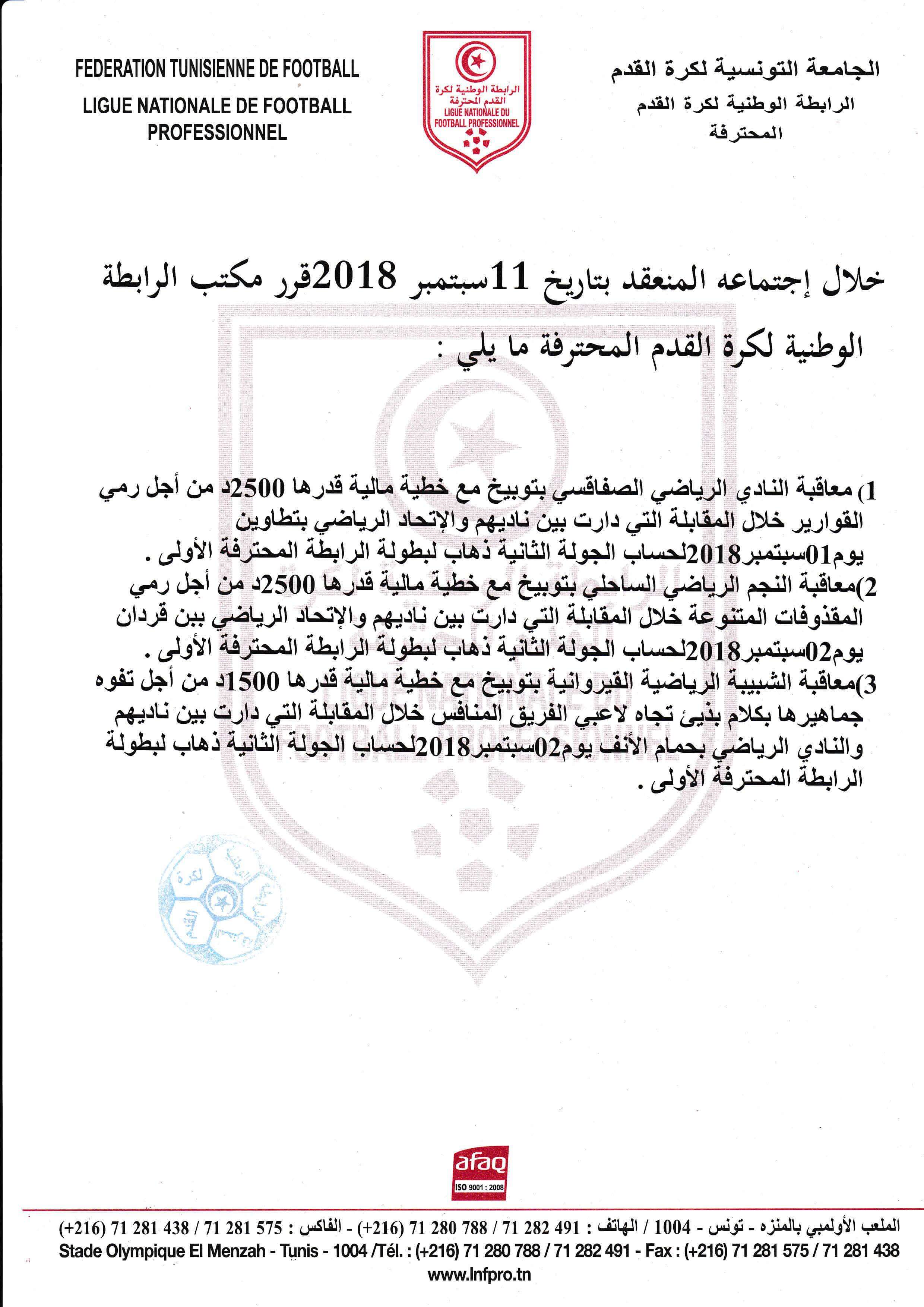 قرارات مكتب الرابطة اثر الجولة الثانية لبطولة الرابطة المحترفة الأولى