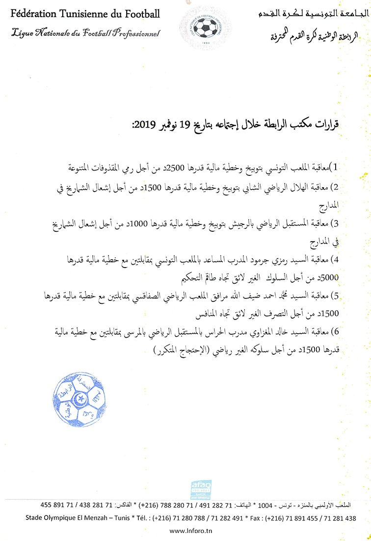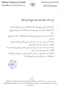 قرارات مكتب الرابطة الوطنبة لكرة القدم المحترفة بتاريخ 19-11-2019
