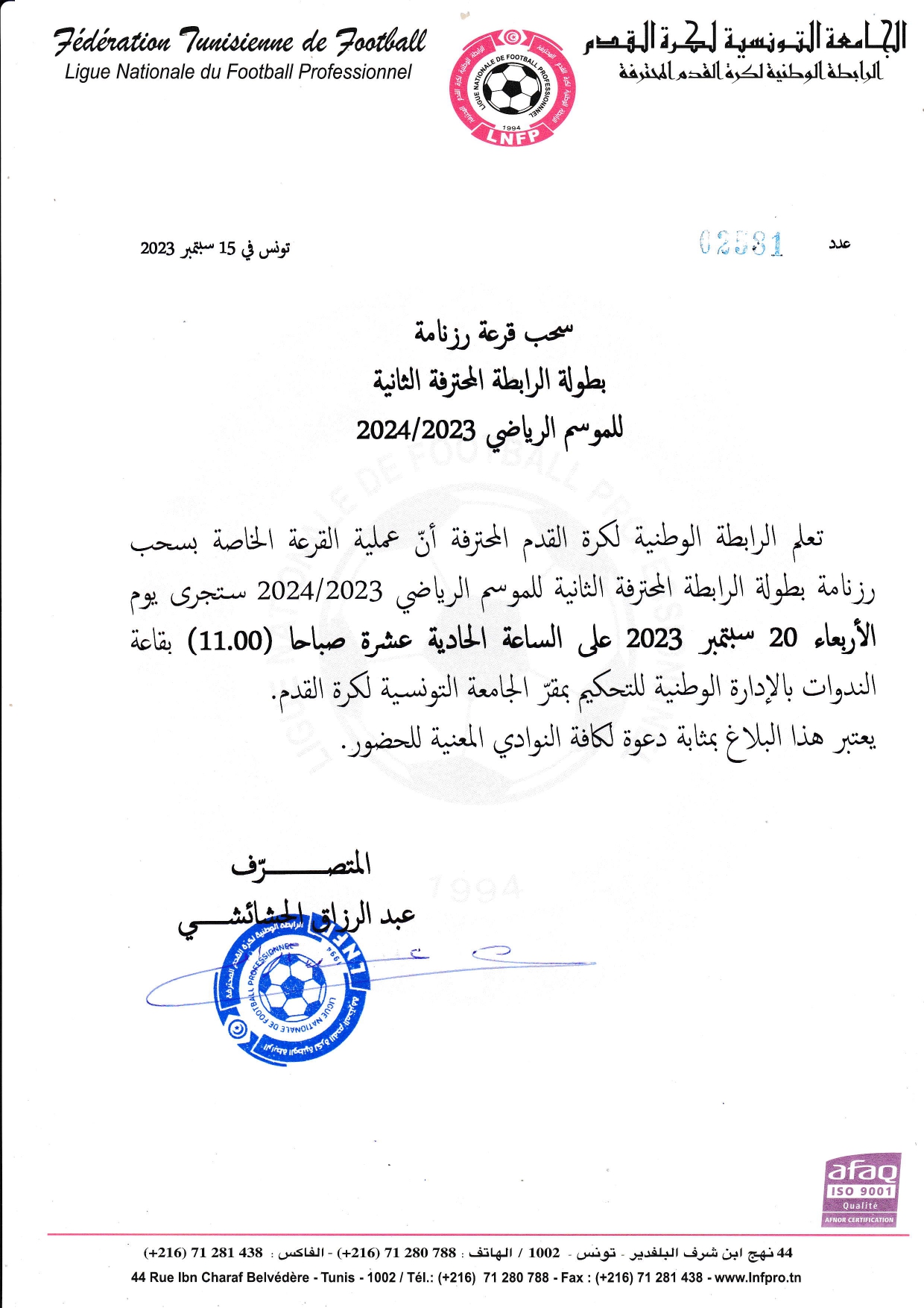 قرعة رزنامة بطولة الرابطة المحترفة الثانية 2024/2023