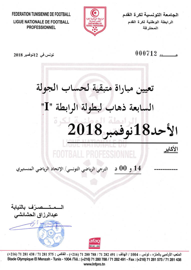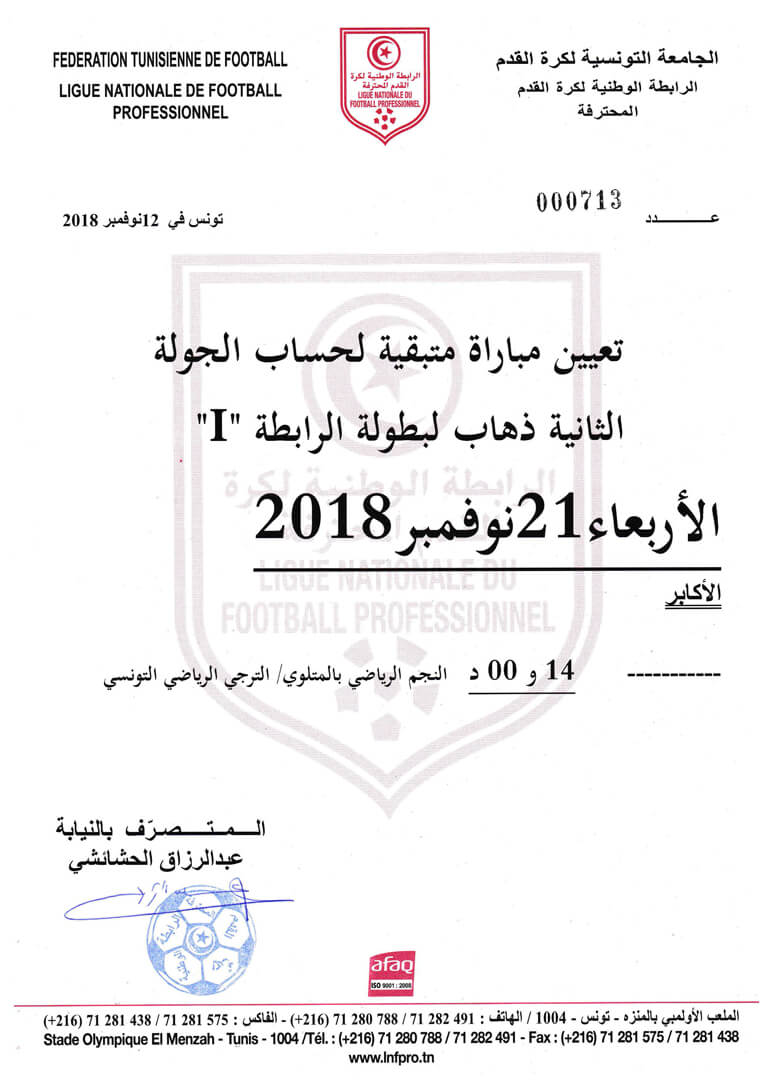 تعديل تعيينات مباريات الجولة 9 ذهاب لبطولة الرابطة « I »