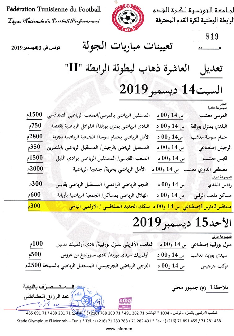 تعيينات مباريات الجولة العاشرة إياب لبطولة الرابطة «II »