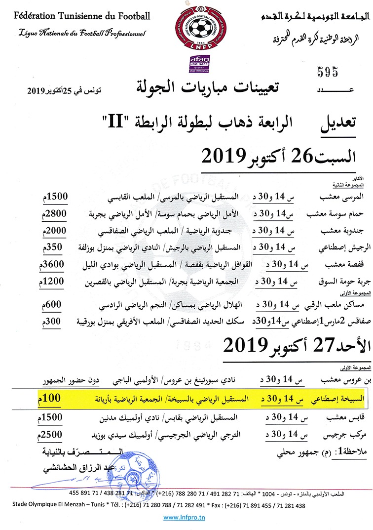 تعيينات مباريات الجولة العاشرة إياب لبطولة الرابطة «II »