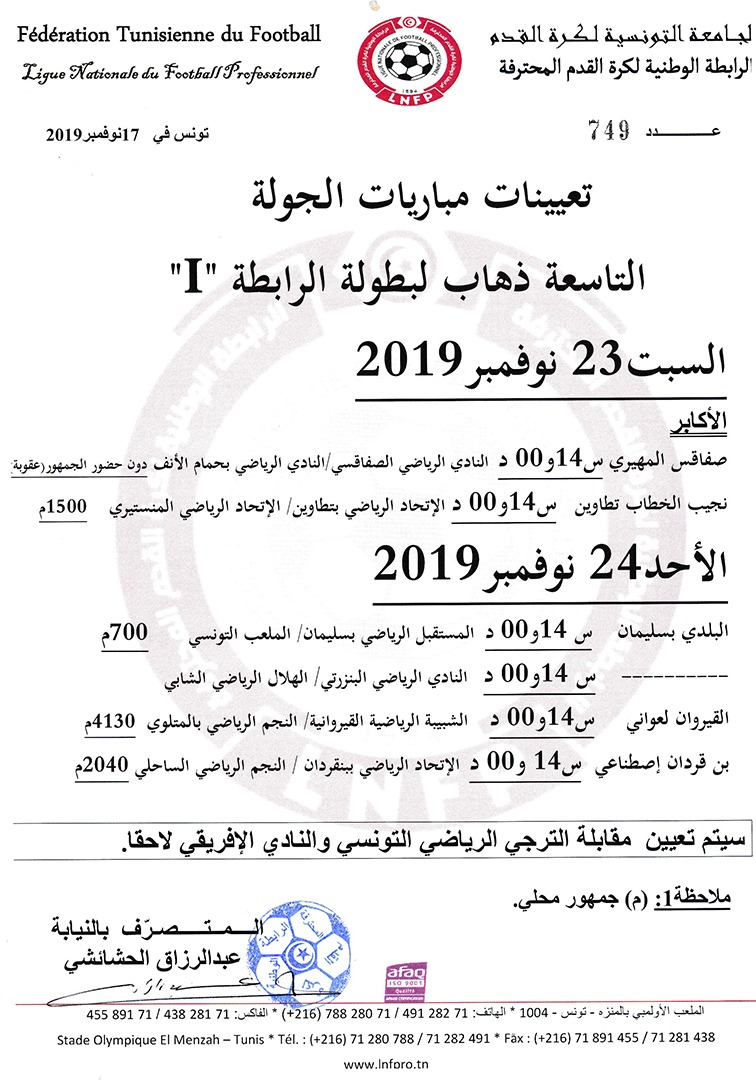 ﺗﻌﻴﻴﻨﺎﺕ ﻣﺒﺎﺭﻳﺎﺕ ﺍﻟﺠﻮﻟﺔ التاسعة ذهاب ﻟﺒﻄﻮﻟﺔ ﺍﻟﺮﺍﺑﻄﺔ 1