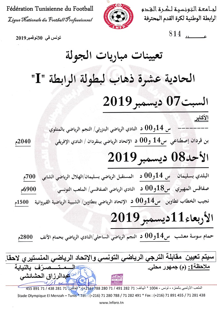 ﺗﻌﻴﻴﻨﺎﺕ ﻣﺒﺎﺭﻳﺎﺕ ﺍﻟﺠﻮﻟﺔ الحادية عشر ذهاب ﻟﺒﻄﻮﻟﺔ ﺍﻟﺮﺍﺑﻄﺔ 1
