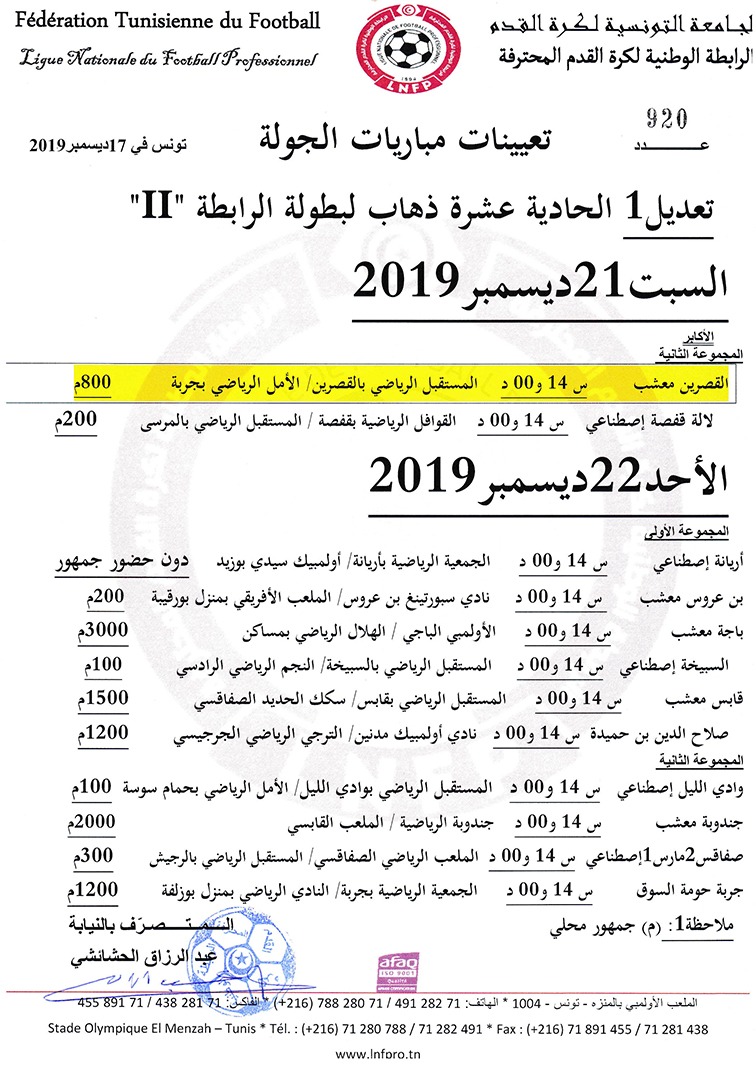 تعيينات مباريات الجولة التاسعة إياب لبطولة الرابطة « II »