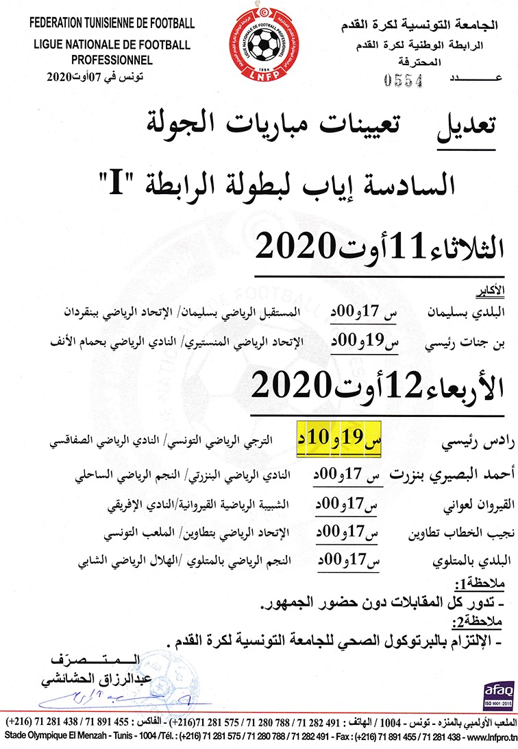 1 تعديل ﺗﻌﻴﻴﻨﺎﺕ ﻣﺒﺎﺭﻳﺎﺕ ﺍﻟﺠﻮﻟﺔ السادسة ﺍﻳﺎﺏ ﻟﺒﻄﻮﻟﺔ الرابطة