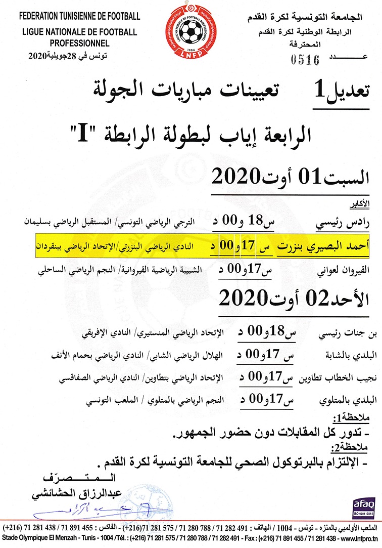 تعيينات مباريات الجولة العاشرة إياب لبطولة الرابطة « I »