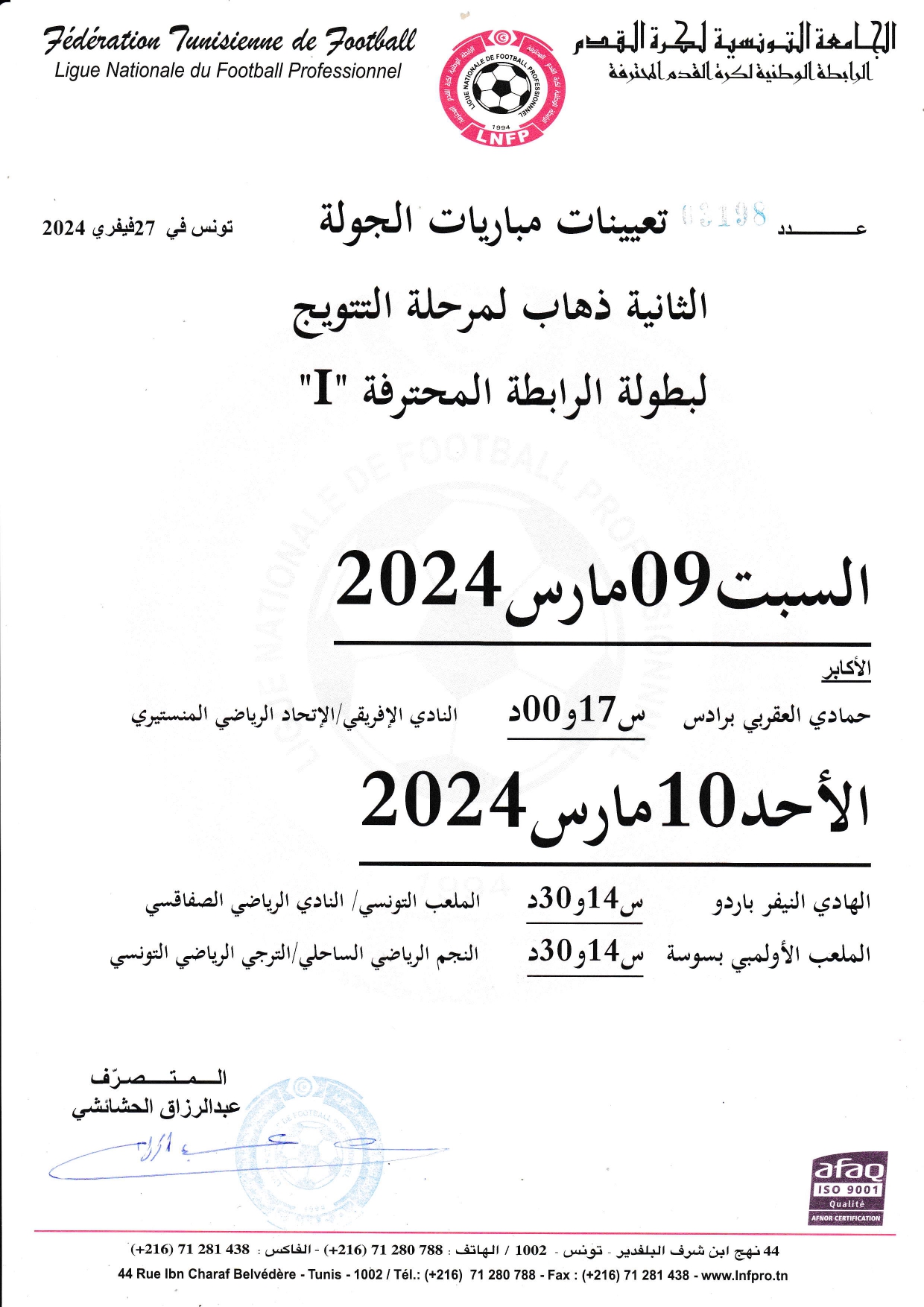 1 تعيين مقابلة الجولة 2 ذهاب لمرحلة التتويج لبطولة الرابطة