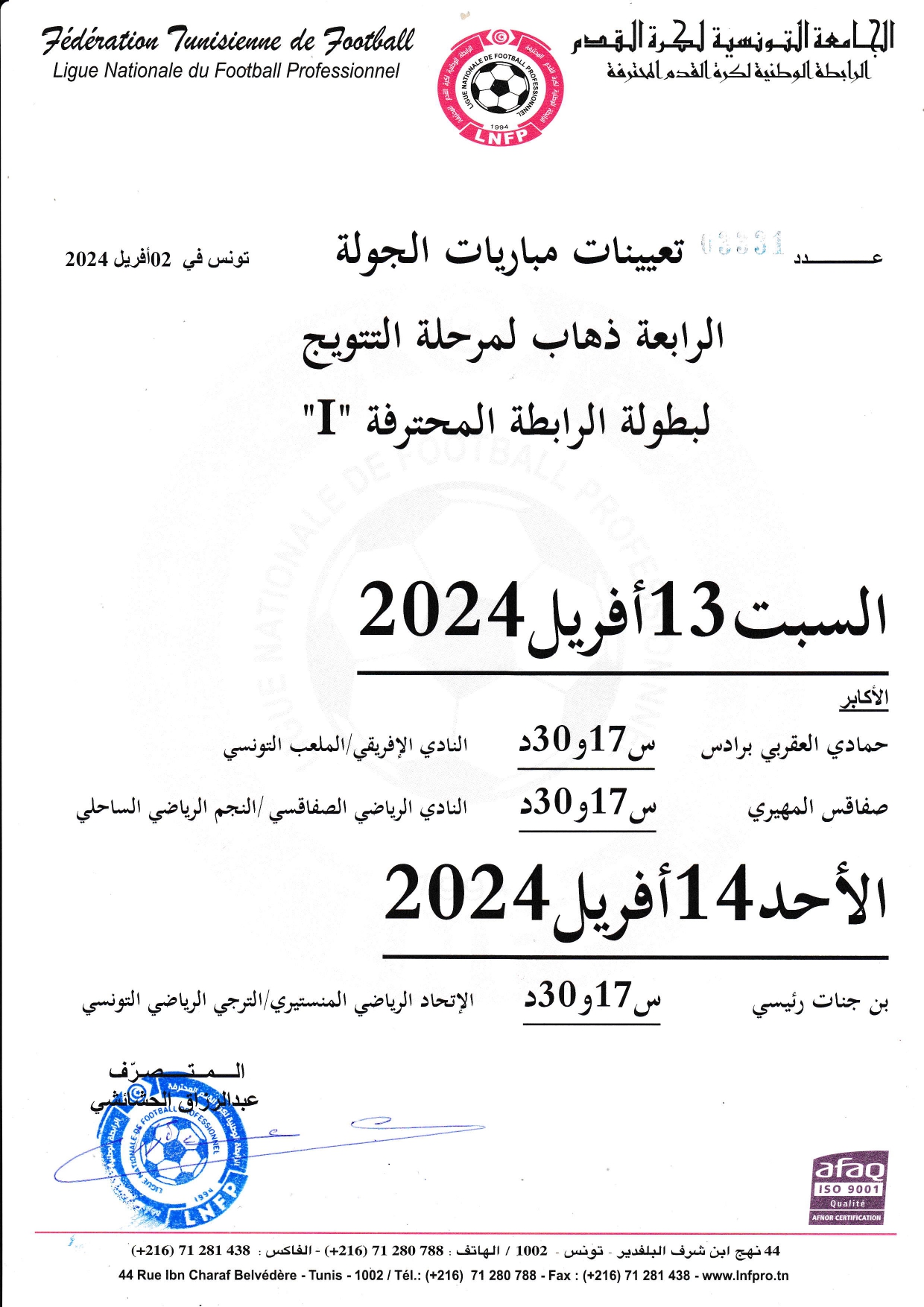 1 تعيين مقابلة الجولة 4 ذهاب لمرحلة التتويج لبطولة الرابطة
