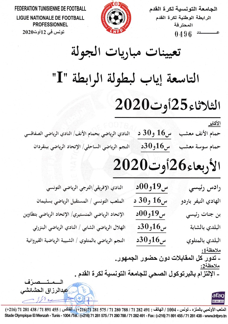 1 ﺗﻌﻴﻴﻨﺎﺕ ﻣﺒﺎﺭﻳﺎﺕ ﺍﻟﺠﻮﻟﺔ التاسعة ﺍﻳﺎﺏ ﻟﺒﻄﻮﻟﺔ الرابطة