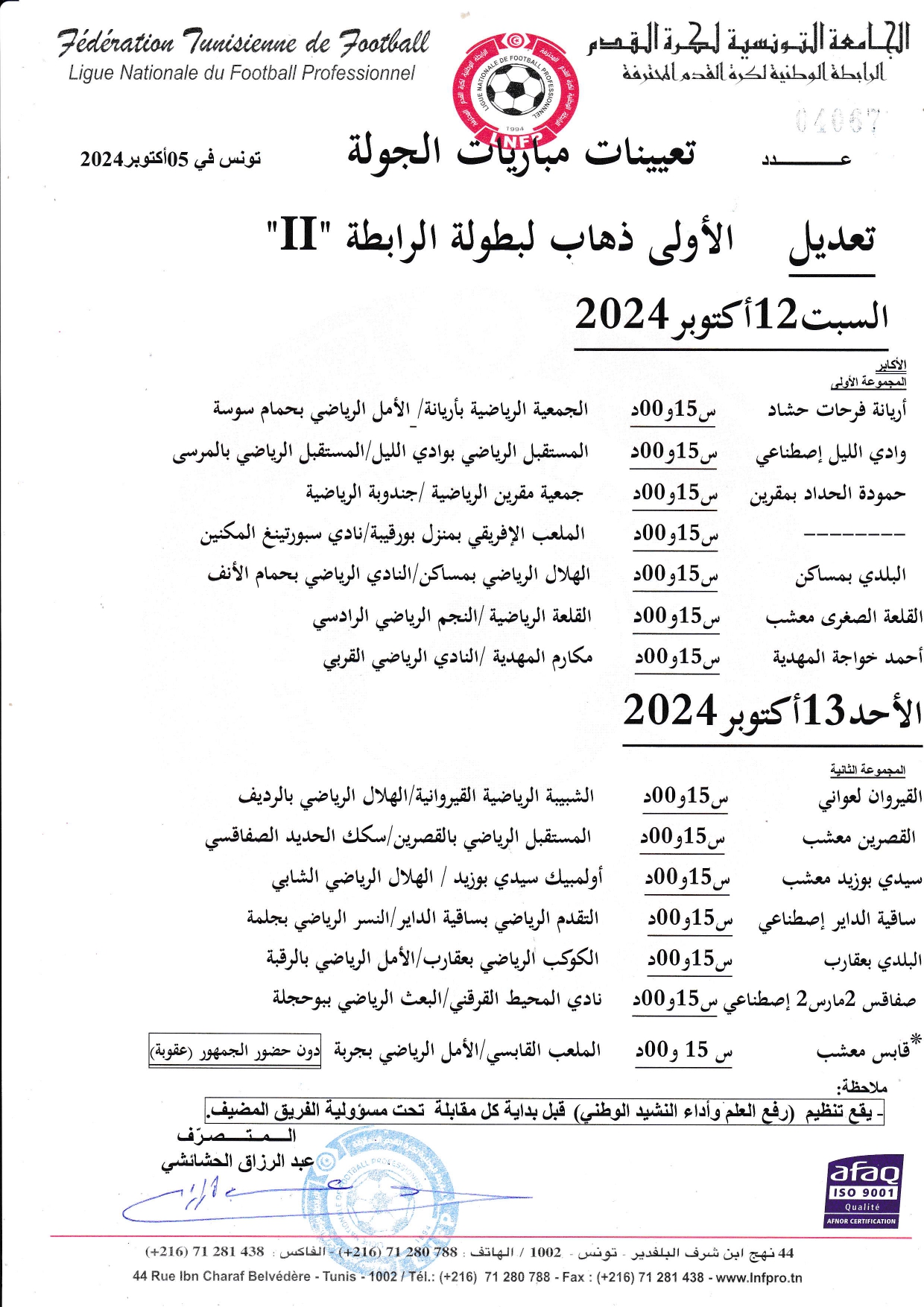 تعديل تعيينات مباريات الجولة 9 ذهاب لبطولة الرابطة « I »