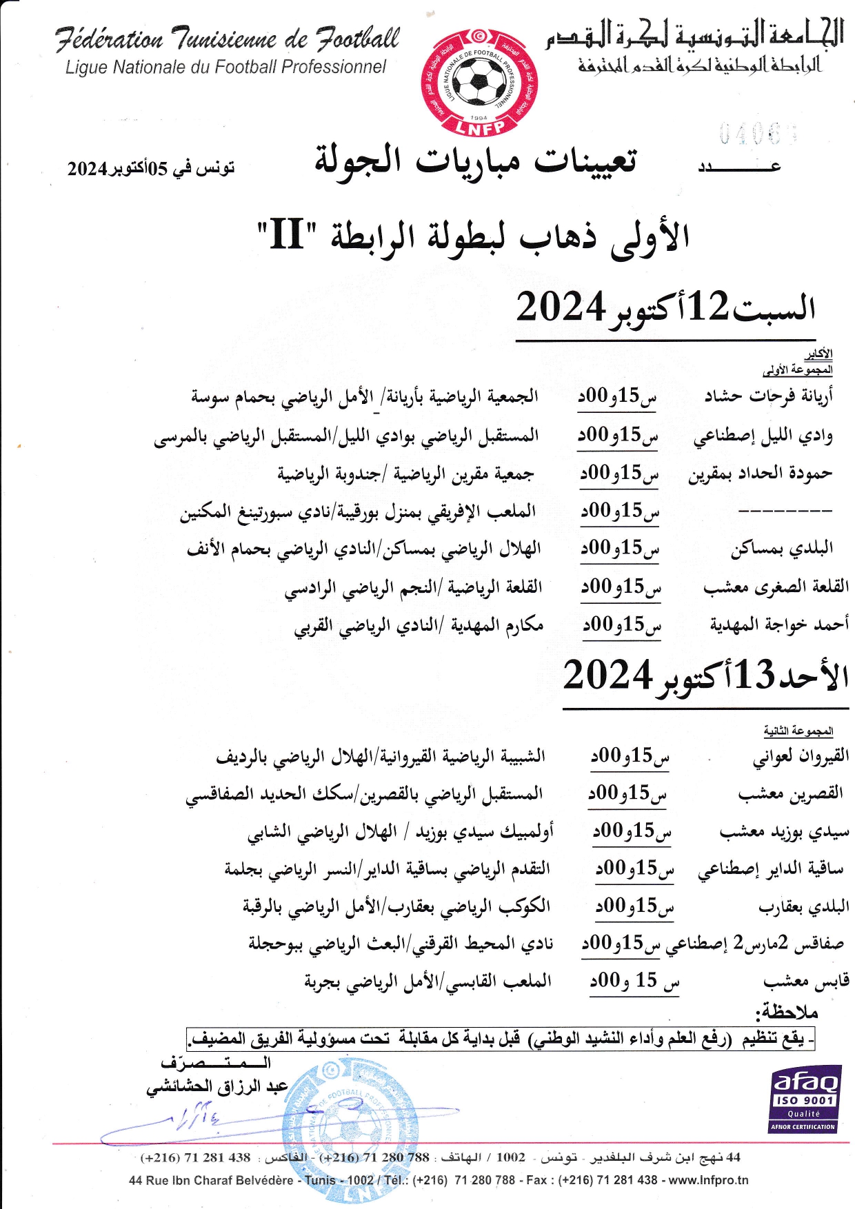 تعديل تعيينات مباريات الجولة 9 ذهاب لبطولة الرابطة « I »