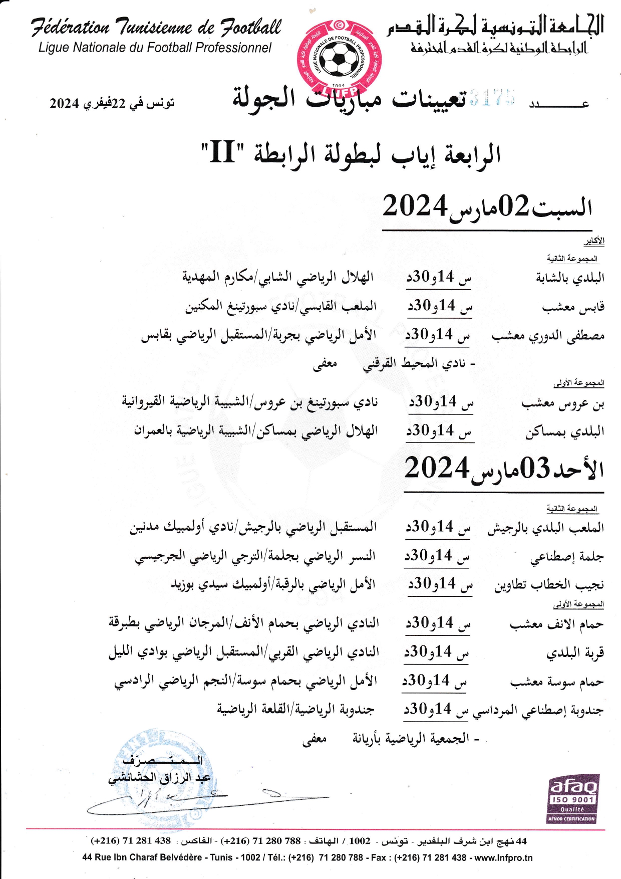 2 تعيين مقابلة الجولة 4 إياب لبطولة الرابطة