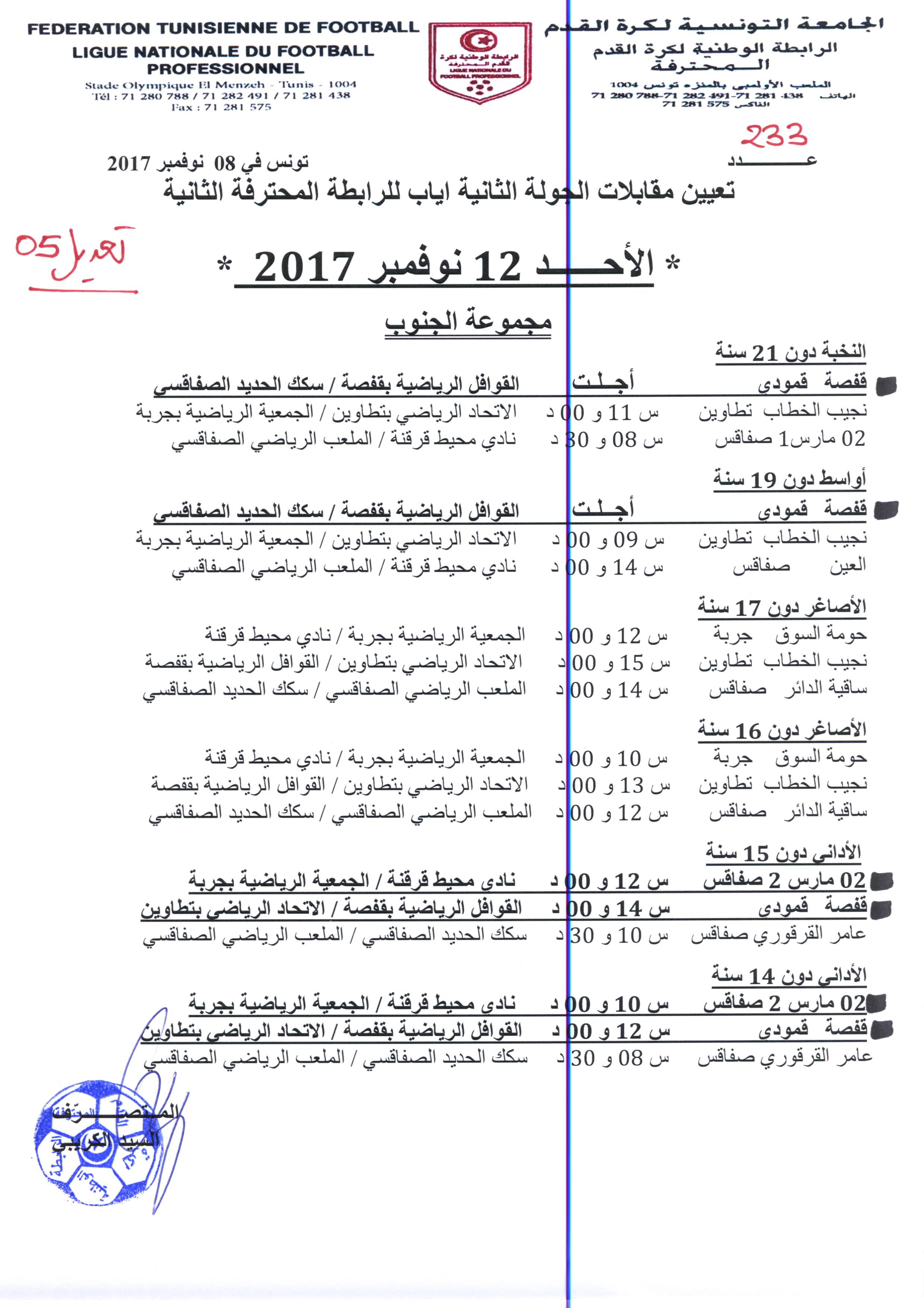 تعديل تعيينات مباريات الجولة 9 ذهاب لبطولة الرابطة « I »