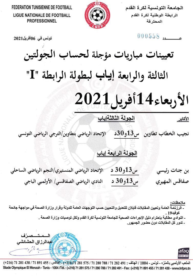 1 تعيينات مباريات مؤجلة لحساب الجولتين الثالثة و الرابعة إياب لبطولة الرابطة