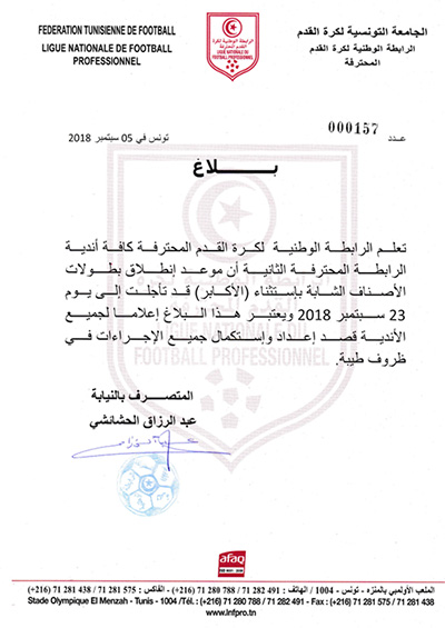 تعديل تعيينات مباريات الجولة 9 ذهاب لبطولة الرابطة « I »