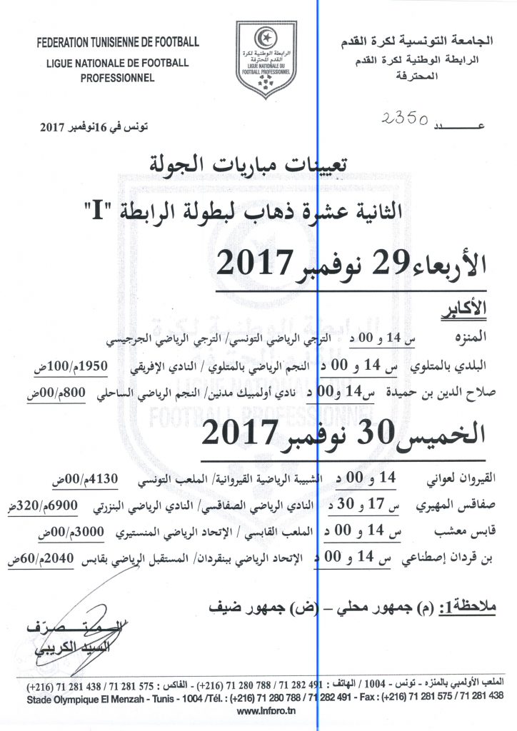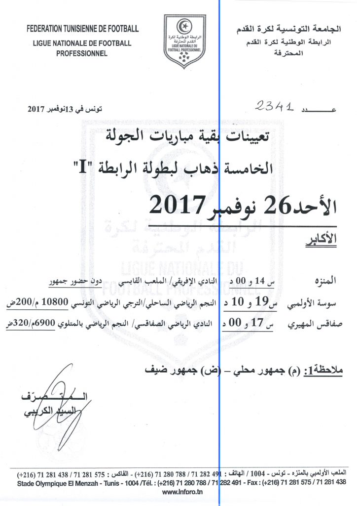 تعديل تعيينات مباريات الجولة 9 ذهاب لبطولة الرابطة « I »