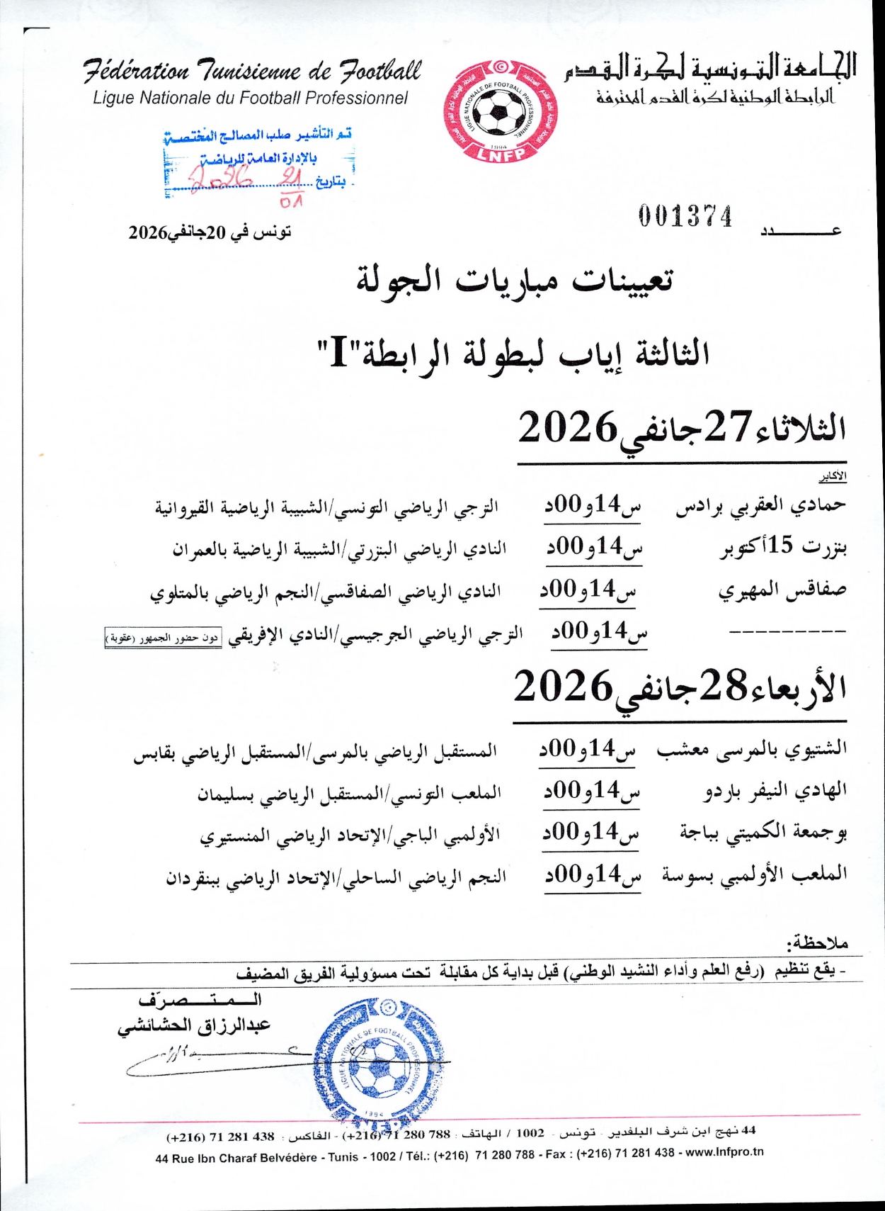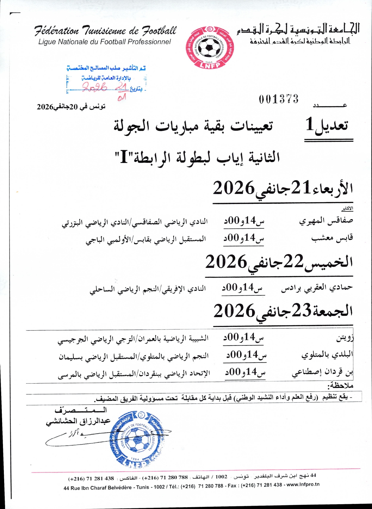 Iتعديل 1 تعيينات بقية مباريات الجولة الثانية إياب لبطولة الرابطة