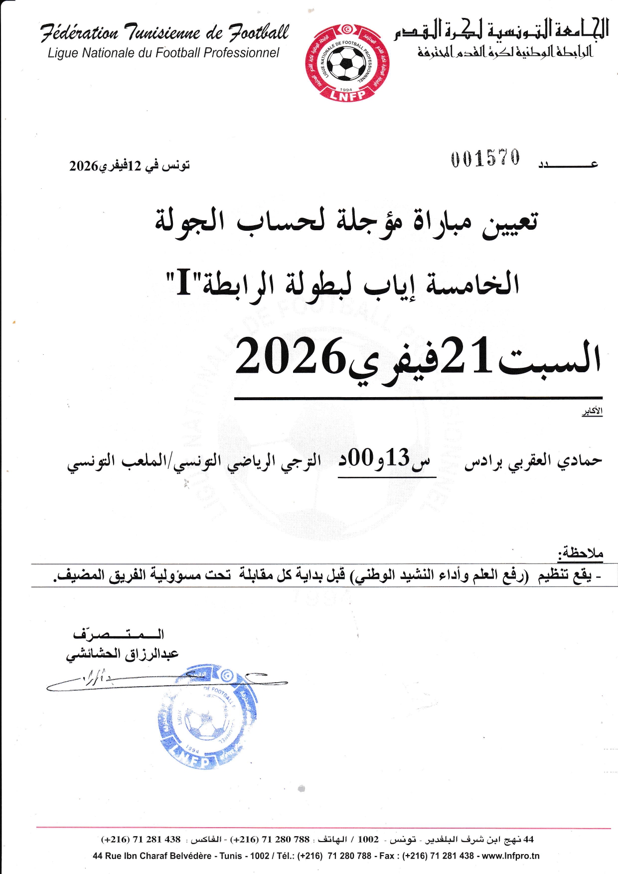 I تعديل تعيينات مباراة مؤجلة لحساب الجولة الخامسة إياب لبطولة الرابطة
