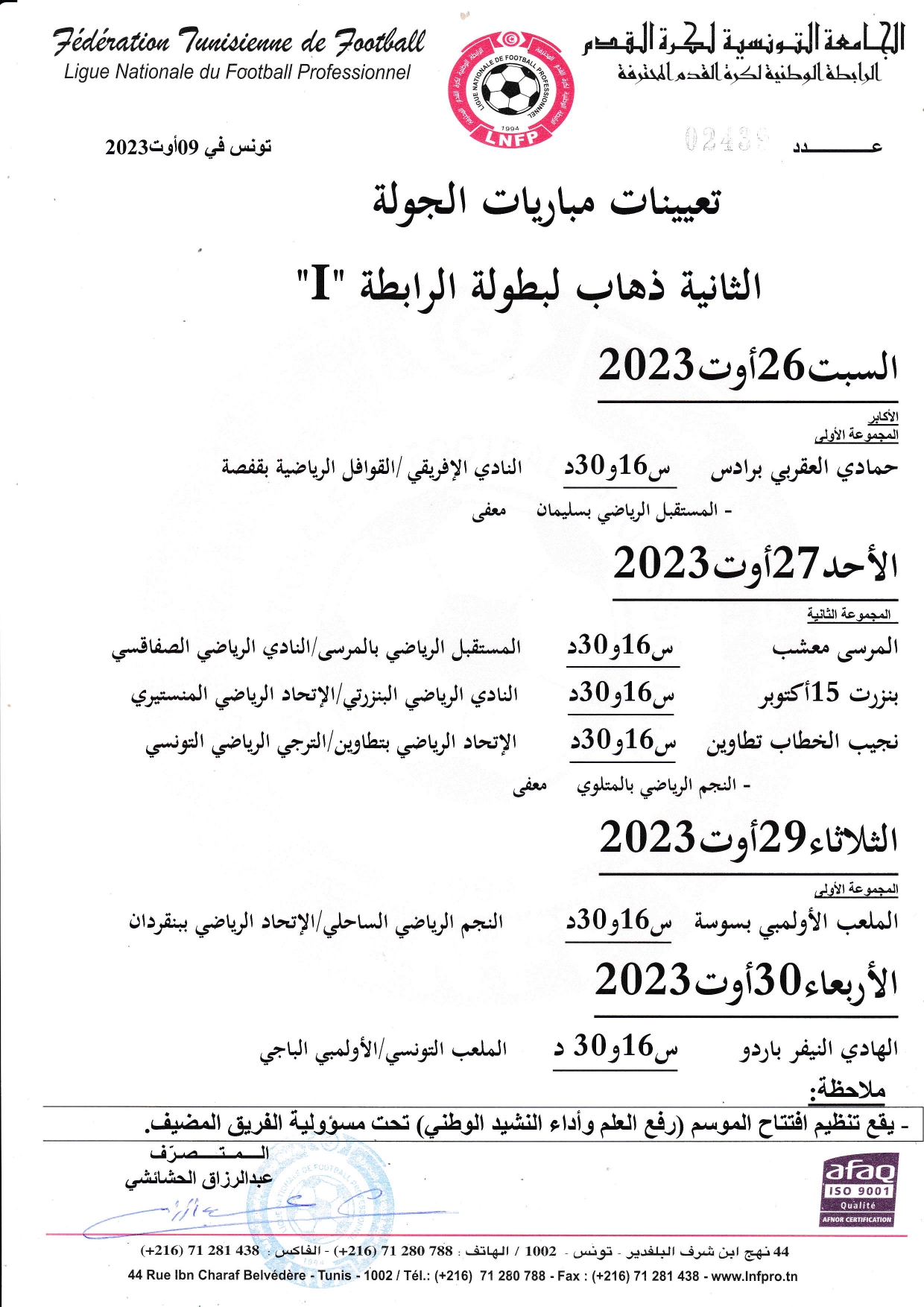 تعديل تعيينات مباريات الجولة 9 ذهاب لبطولة الرابطة « I »