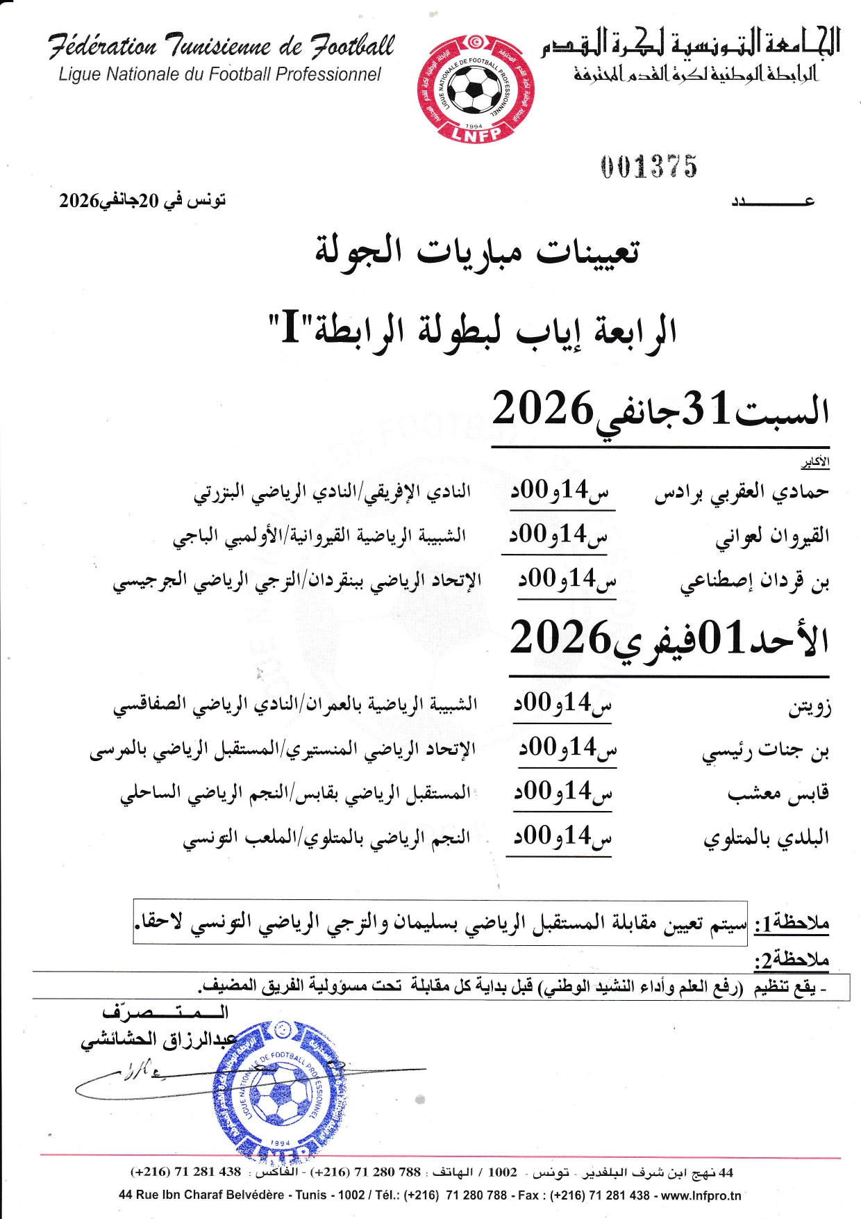 I تعيينات مباريات الجولة الرابعة إياب لبطولة الرابطة