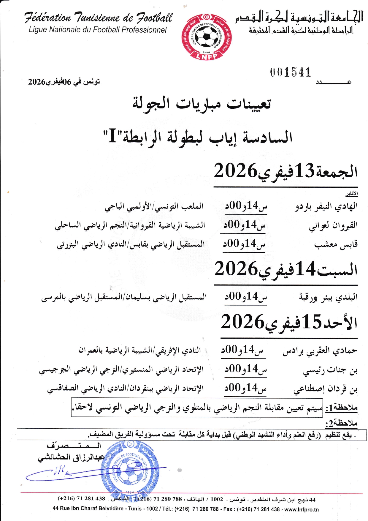 I تعيينات مباريات الجولة السادسة إياب لبطولة الرابطة