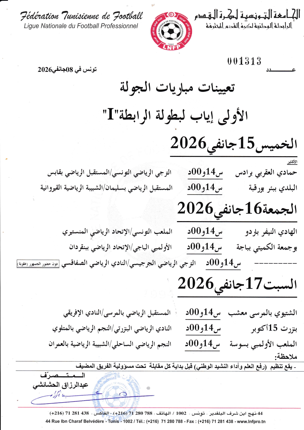 تعيينات مباريات الجولة العاشرة إياب لبطولة الرابطة « I »