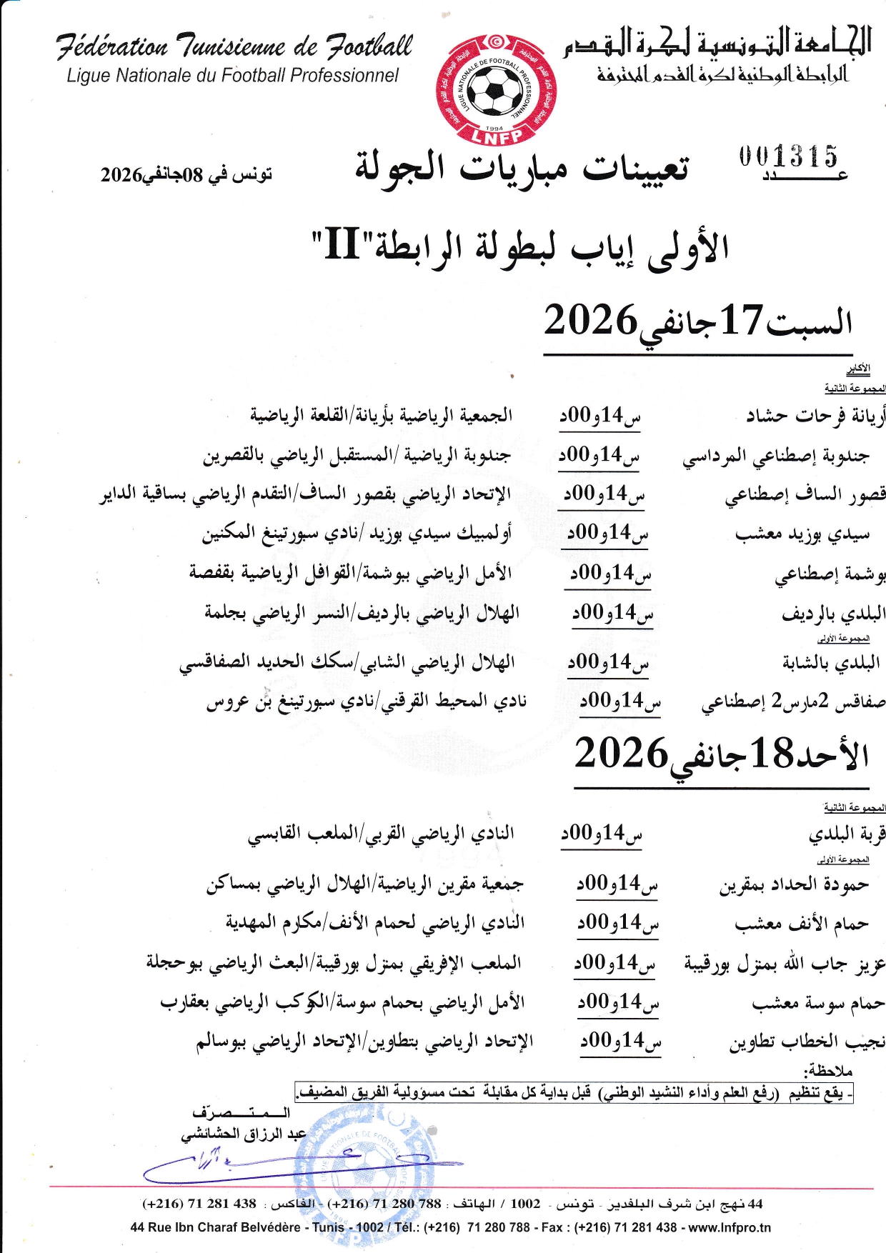 تعيينات مباريات الجولة التاسعة إياب لبطولة الرابطة « II »