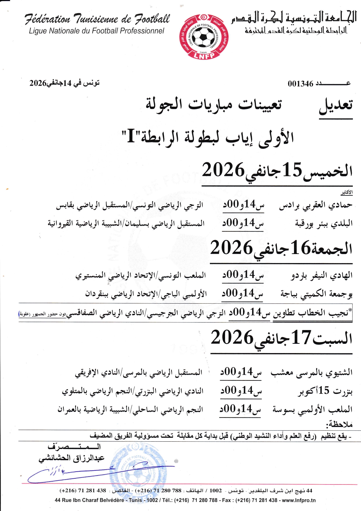 I تعديل تعيينات مباريات الجولة 1 اياب لبطولة الرابطة