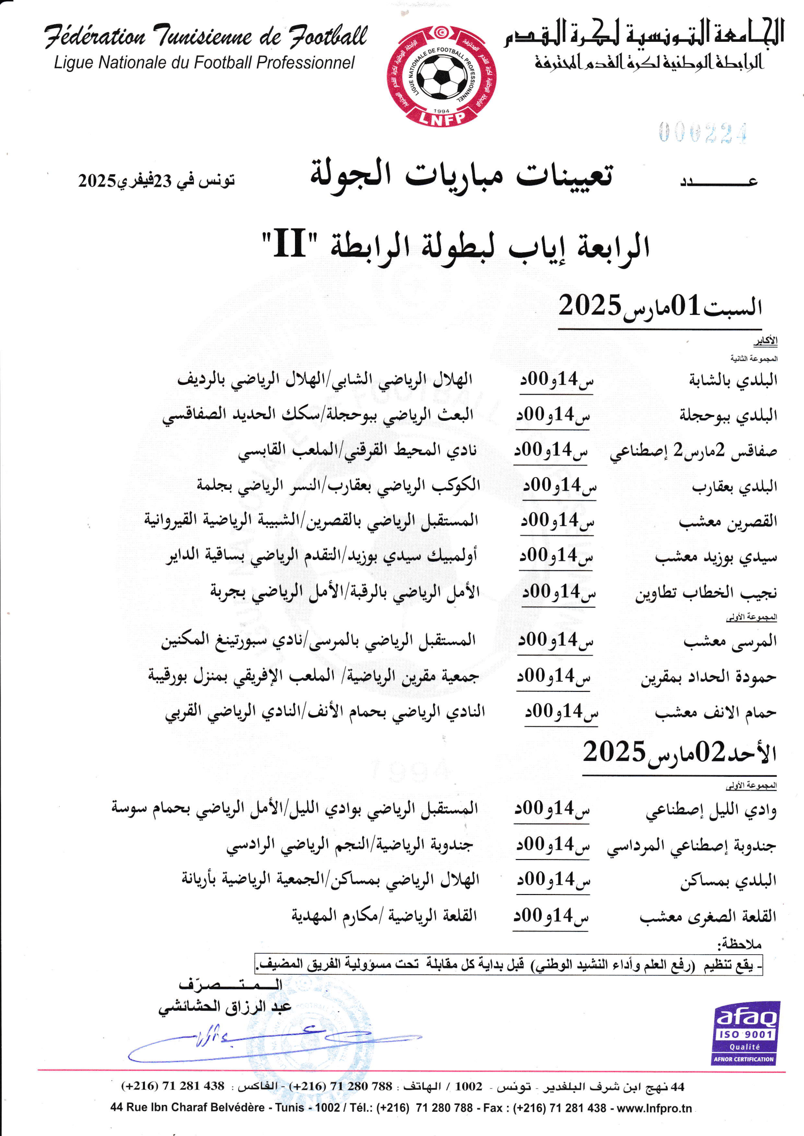 « II » تعيينات مباريات الجولة 4 إياب لبطولة الرابطة