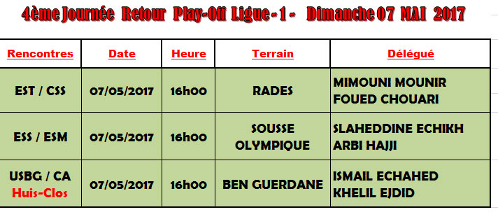 Ligue 1 – Play OFF – 9ème journée : Désignations des délégués
